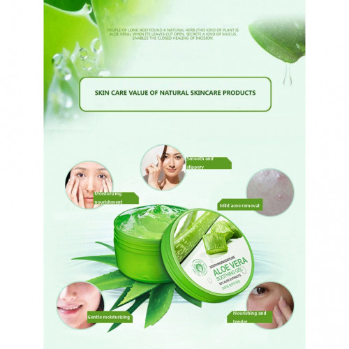 • Aloe vera gel can be used in many different ways. For example, use it as a body moisturizer, facial mask, eye mask, and use it as an after-sun lotion for surface burns or sunburns to soothe and modify damaged skin. Shave more compact shaving gel, hair spray and more! You will like that it is quickly absorbed without leaving an oily residue or greasiness.