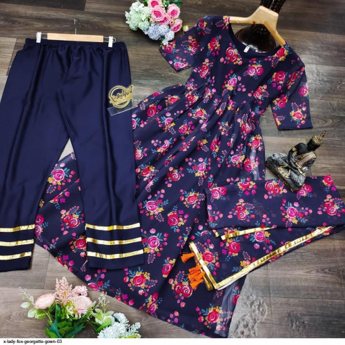 Half Sleeves Gown Kurtis Lais Work 3 Piece