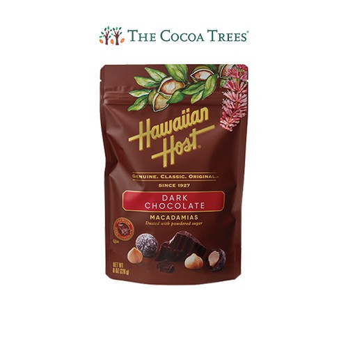 Hawaiian Host Dark chocolate Macadamia 226GM Revel in the new taste of paradise! Hawaiian honey is the star ingredient in this delectable pairing. Premium macadamias are glazed with rich Hawaiian honey, coated in creamy milk chocolate, and then dusted with powdered sugar. This 8oz bag is made for immediate chocolate-covered-macadamia satisfaction—but also lets you savor the sweetness for later thanks to its resealable bag