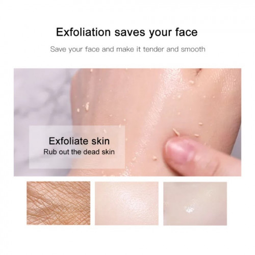 3. How to use: After the cleansing is dry, take appropriate amount of this product, avoid the eye area and lips, evenly apply f face, gently massage the skin texture until the dead skin is rubbed out, then rinse with clean water.