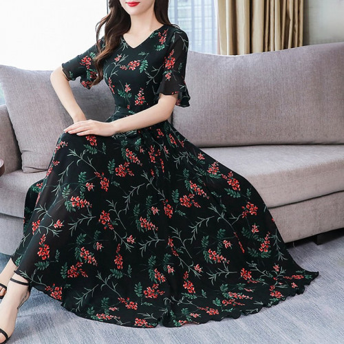 Summer Women Chiffon Dress Long Elegant Print Floral Party Dresses