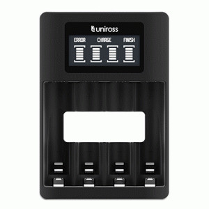 Product details of UNIROSS LCD CHARGER BY MICRO USB BrandUnirossProduct TypeChargerBattery Format1.2V Ni-MH/CD AA, AAACharging CurrentAA (1-2 pcs): 900mA; AA (3-4 pcs): 450mA; AAA (1-2pcs): 450mA; AAA (3-4pcs): 450mAPower TypeMicro USB cableNo. of Channels4LED IndicatorHigh Resolution LCD display detecting the charging status (5 levels)VoltageInput: USB DC 5V 1A (Micro USB) This is a Standard charger that can charge batteries very fast. It has also extra car chord to charge on the way so that you can meet your charging solution any time