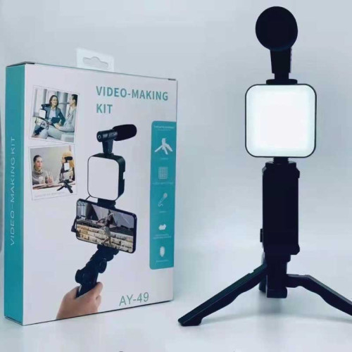 AY-49 Video Vlogger Kits Microphone LED Fill Light Mini Tripod For Phone Vlog Video Recording Condenser.